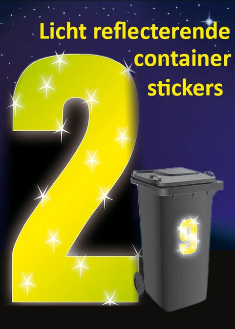 Super Mooie opvallende containerstickers, bestel ze in je huisnummer zodat iedereen weet dat deze container op jouw adres zijn thuishaven heeft. De reflecterende sticker in fluor geel valt duidelijk op. Bovendien weerkaats de neon sticker zodra auto’s en fietsers er met hun lichten op schijnen. Het voorkomt dus ongelukken in het donker en zorgt ervoor dat jouw afvalcontainer altijd makkelijk terug te vinden is.