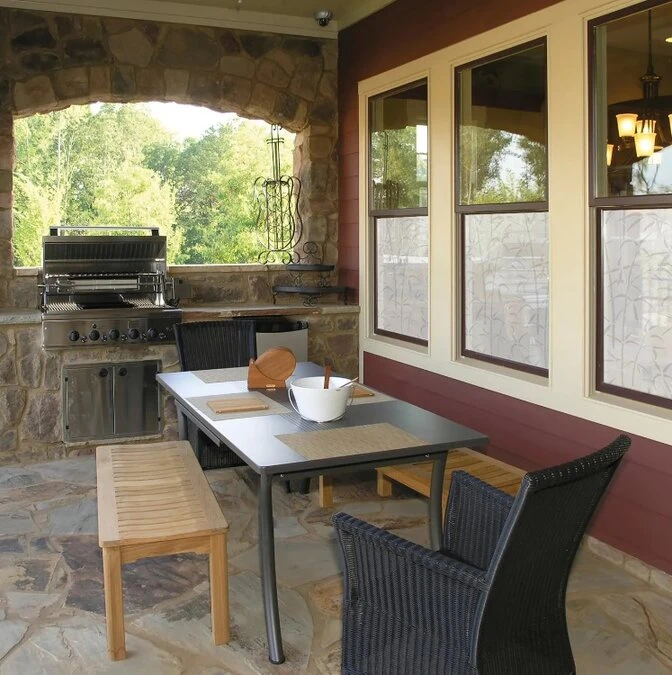Statische decoratiefolie met bamboe en bladeren print. Een mooie anti inkijk folie dat ook een decoratieve look heeft. Dit folie van DC-fix is 67,5 x 150 centimeter lang. Plak het folie aan de binnenkant van je ramen. (Zie op foto 3 hoe de bamboestengels op het folie staan)