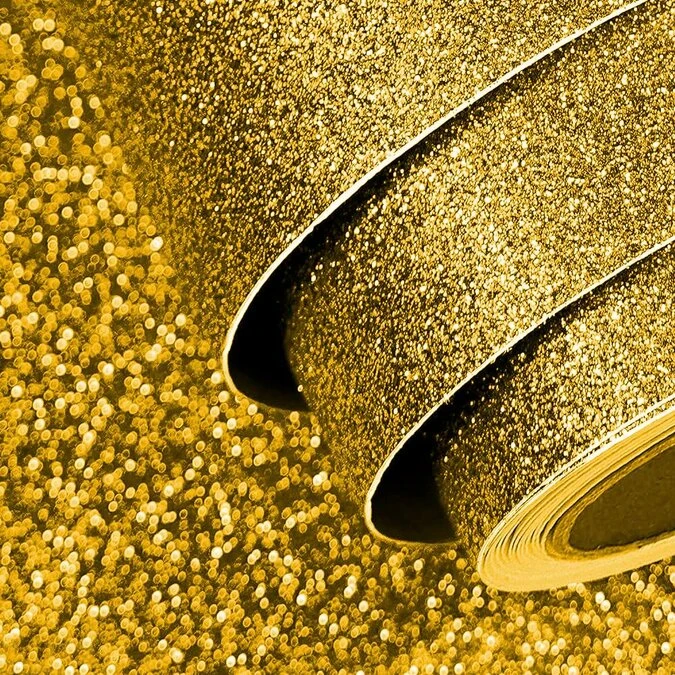 Voor een glitterlook nachtkastje op de kinder slaapkamer, in de etalage van je sieraden winkel of als wanddecoratie in jouw beautysalon hebben wij hoge kwaliteit glitter plakfolie in het goud. Het glitterfolie plak je binnen op elke vlakke ondergrond. De breedte is 122cm, de lengte kies je zelf! (per staffel van 1 meter)