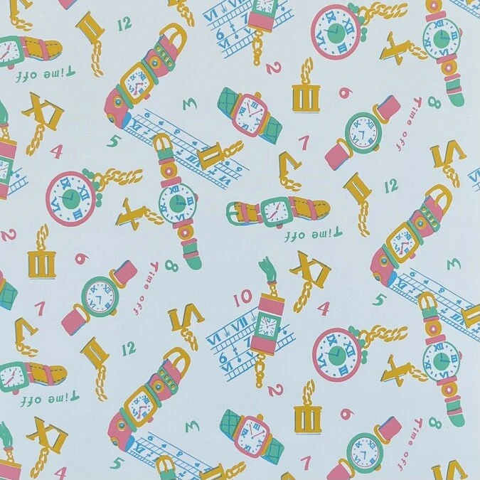 Trendy plakfolie met hippe horloges. Ideaal voor het beplakken van je vensterbank, keukenkastjes, kastdeuren en bureau. Wil jij ook lekker creatief je woonkamer of slaapkamer upgraden? Koop dan deze kant en klare rol zelfklevende decoratiefolie.