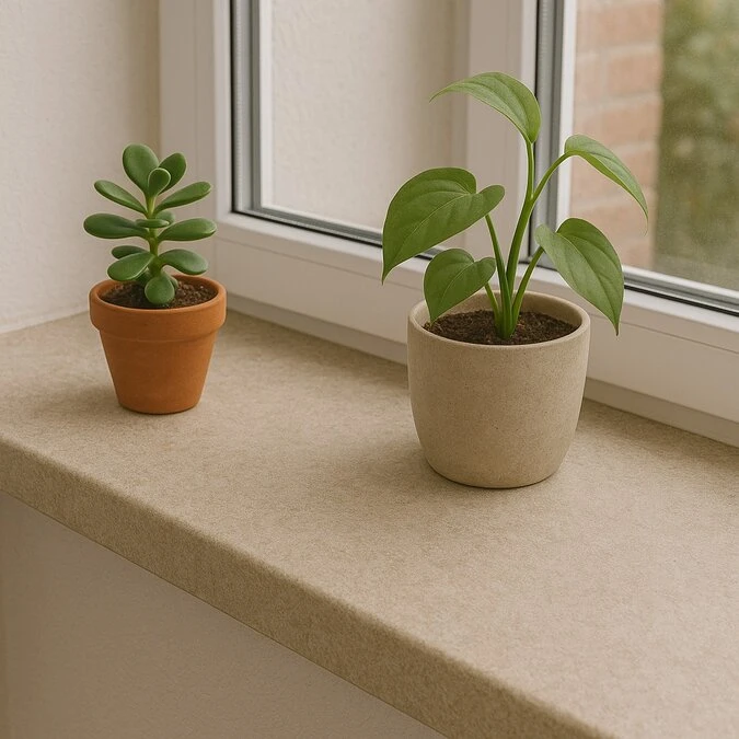 Dit zelfklevende interieurfolie bestaat uit een gespikkelde ondergrond in matte beige tinten. Het folie heeft een korrelige structuur. Bestel een proefstaaltje zodat je een exacte indruk krijgt.